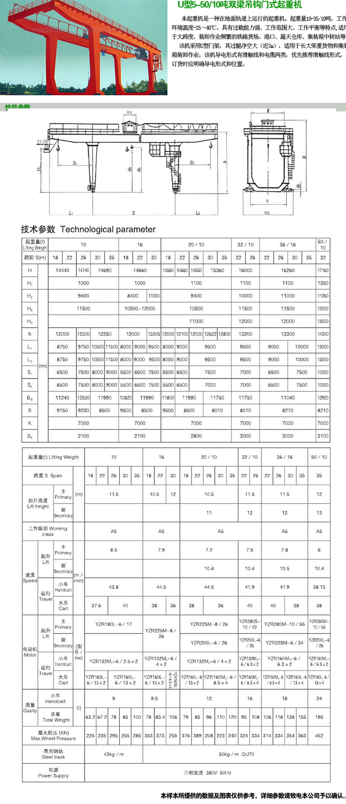 U型10-50/10T雙梁吊鉤門式起重機(jī) · 產(chǎn)品介紹